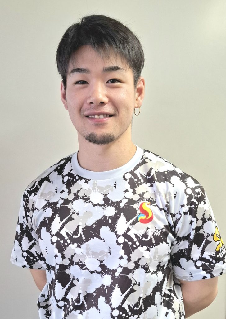 ベビーフェイスながら身体が大きく力持ち。ボディメイクも得意なトレーナーです。